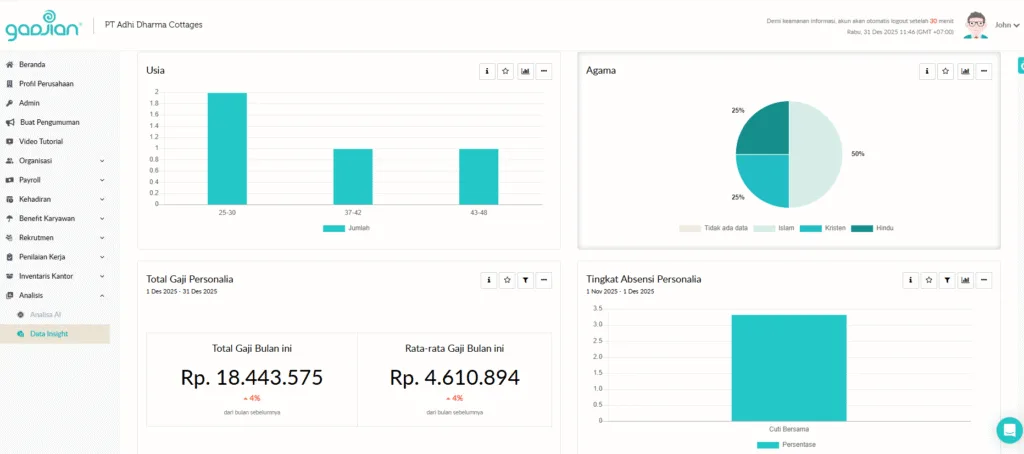 For organizations operating in Indonesia, the challenge is not ambition but practicality. Gadjian’s HR Analytics Dashboard is designed to support data-driven workforce management within local regulations and real operational constraints.